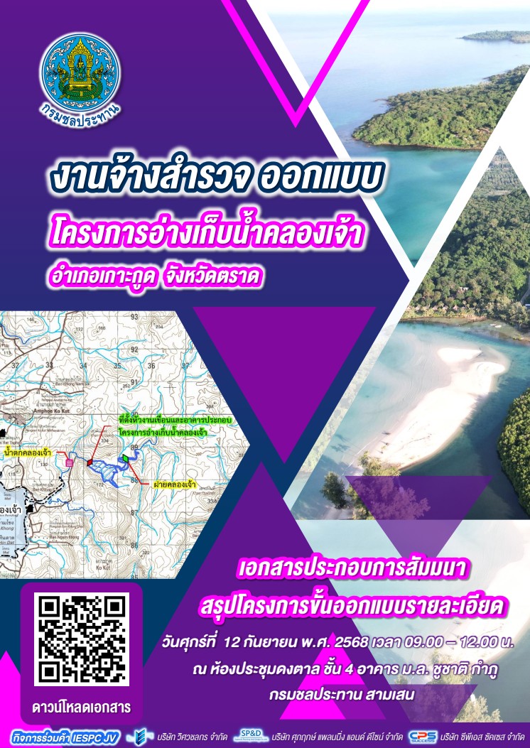 ประชาชน ผู้สนใจข้อมูลของ งานจ้างสำรวจ ออกแบบ โครงการอ่างเก็บน้ำคลองเจ้า สามารถดาวน์โหลดเอกสารได้ด้านล่าง